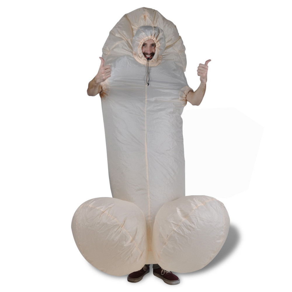 This one explains itself. Be the life of the party with the AltSkin Inflatable Willy Costume. Standard size: fits most adults 5'0" - 6'5". Requires 4 AA batteries. Built-in air fan is quiet and hidden on the back side.