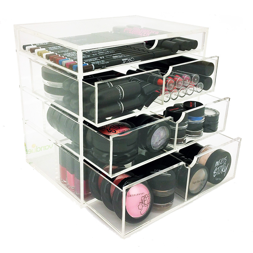 - OnDisplay Cosmetic Makeup and Jewelry Storage Case Display - 4 Drawer Tiered Design - Perfect for Bathroom Counter, Vanity, or Dresser