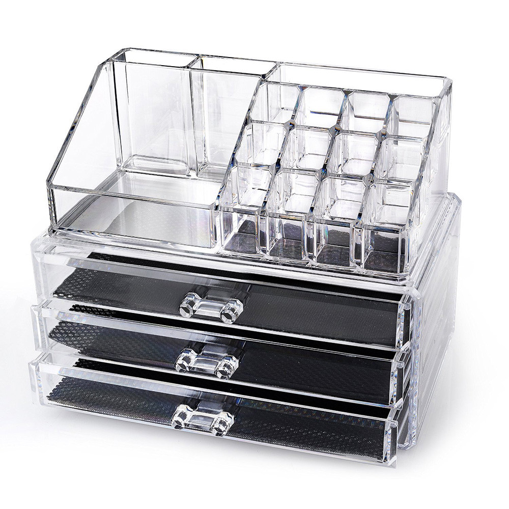 - OnDisplay Cosmetic Makeup and Jewelry Storage Case Display - 3 Drawer Tiered Design - Perfect for Vanity, Bathroom Counter, or Dresser