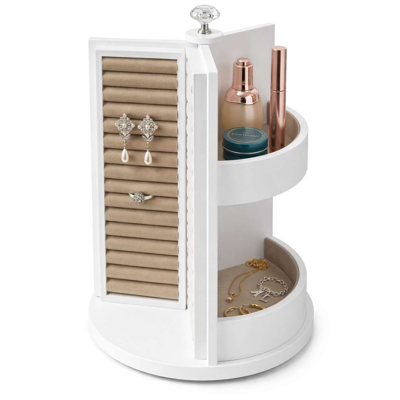 - OnDisplay Brooke Spinning Wooden Jewelry Cabinet Organizer - Holds Earrings, Necklaces, Bracelets and more (White)