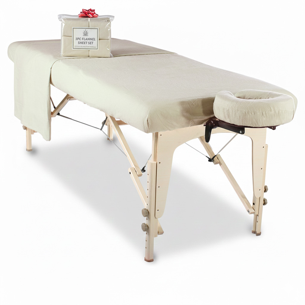 - Royal Massage Premium 3-Piece Double Brushed Flannel Massage Table Sheet Set - Cotton Blend, Ultra-Soft & Breathable - Includes Fitted Sheet, Flat Sheet, and Face Cradle Cover