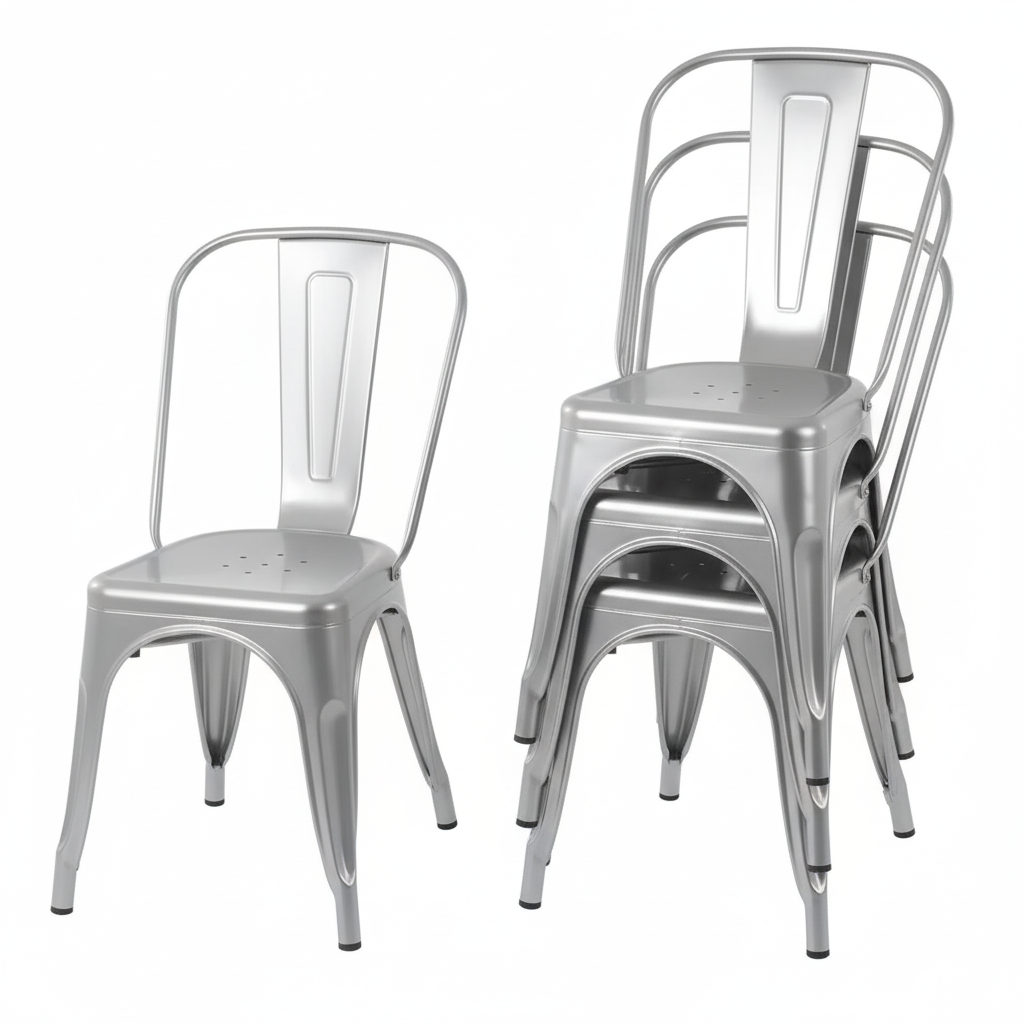 - Cassandra Retro Industrial Stackable Metal Dining Chairs, Set of 4, Solid Steel Frame, Kitchen Bistro Cafe Seating (Silver)
